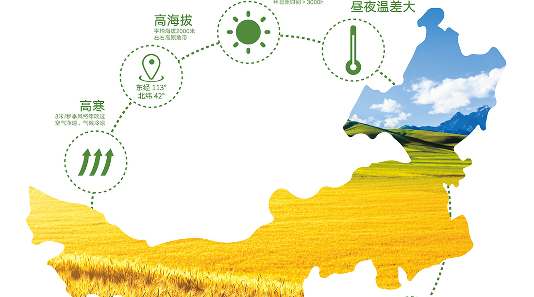 內蒙古,世界裸燕麥起源地之一;陰山源生燕麥在初出生滿足生長規(guī)律一切所需,高寒、高海拔、日照充足;遵循自然法則,靠天滋養(yǎng),自然生長;