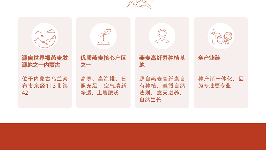 內(nèi)蒙古,世界裸燕麥起源地之一;陰山源生燕麥在此初生滿足生長(zhǎng)規(guī)律一切所需,高寒、高海拔、日照充足;遵循自然法則,靠天滋養(yǎng),自然生長(zhǎng);