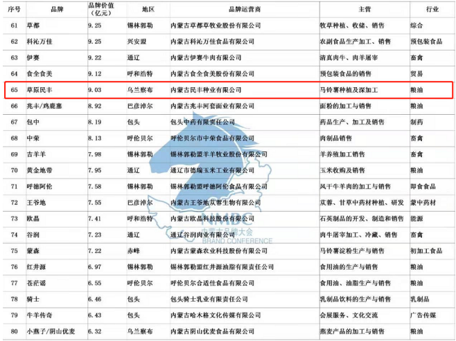 公司注冊(cè)有種薯“草原民豐”、鮮薯“敕勒川”和“塞宜德”、燕麥加工系列“陰山優(yōu)麥”等品牌商標(biāo),其中“草原民豐”2013年被授予“內(nèi)蒙古著名商標(biāo)”,“草原民豐”牌馬鈴薯系列產(chǎn)品2013年被授信為“中國著名品牌”,并榮獲“第十一屆中國國際農(nóng)產(chǎn)品交易會(huì)參展產(chǎn)品金獎(jiǎng)”。公司自主選育的馬鈴薯新品種“民豐紅”,被評(píng)定為內(nèi)蒙古“名優(yōu)特”產(chǎn)品,2010年獲“中國民營(yíng)科技創(chuàng)新成果金獎(jiǎng)”,2015年正式通過自治區(qū)品種認(rèn)定,同年榮獲“自治區(qū)主席質(zhì)量獎(jiǎng)”榮譽(yù)稱號(hào)。2017 年“民豐種業(yè)、草原民豐、敕勒川、塞宜德、陰山優(yōu)麥”品牌被評(píng)為內(nèi)蒙古農(nóng)畜牧產(chǎn)品市場(chǎng)領(lǐng)先品牌,2018年榮獲“自治區(qū)優(yōu)秀民營(yíng)企業(yè)”稱號(hào),2019年“草原民豐”品牌被評(píng)為“2019年內(nèi)蒙古馬鈴薯產(chǎn)業(yè)行業(yè)標(biāo)志性品牌”,內(nèi)蒙古品牌價(jià)值評(píng)估值9.03億元,在內(nèi)蒙古品牌總榜單排名第65位。2020年在抗擊疫情過程中,被湖北慈善總會(huì)、烏蘭察布紅十字會(huì)、烏蘭察布橋東社區(qū)等多地授予“愛心企業(yè)”稱號(hào)。